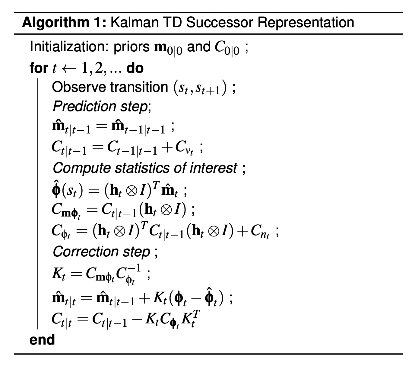 Geerts, J. P., Stachenfeld, K. L., and Burgess, N. (2019). Probabilistic Successor Representations with Kalman Temporal Differences. 2019 Conference on Cognitive Computational Neuroscience. doi:10.32470/CCN.2019.1323-0.