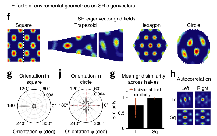 The SR predicts correctly that the grids align with the environment boundaries and adapt to different shapes.