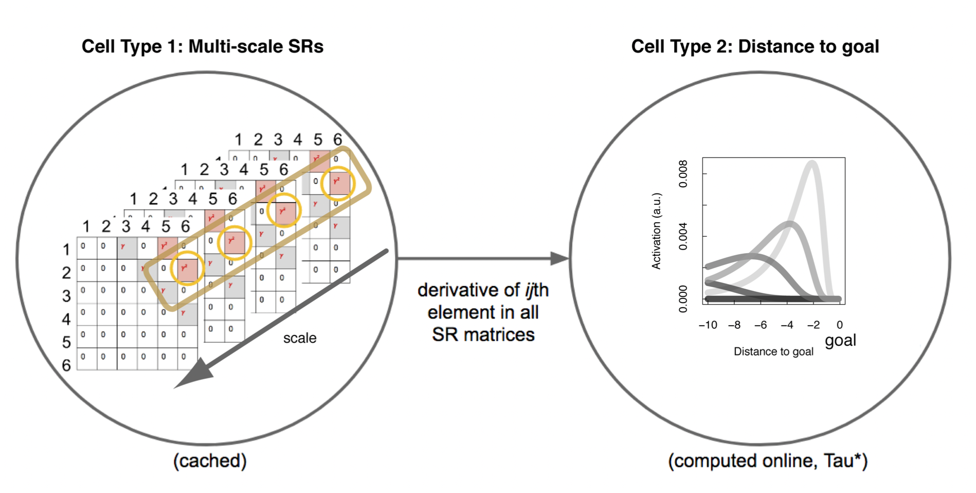 A neurally plausible linear operation, namely the inverse of the Laplace transform, can be used to compute the derivative of multi-scale SR and obtain an estimation of the distance to a goal.