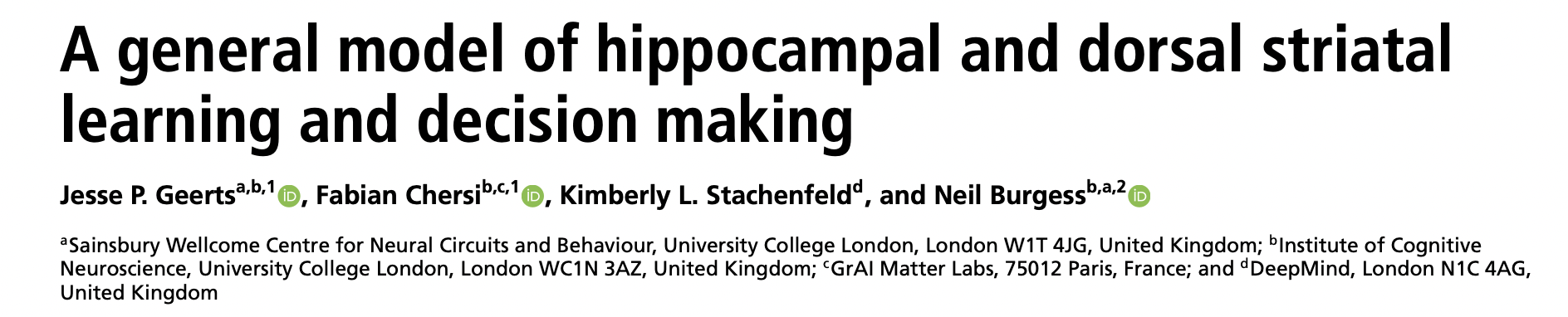 Geerts et al. (2020). A general model of hippocampal and dorsal striatal learning and decision making.