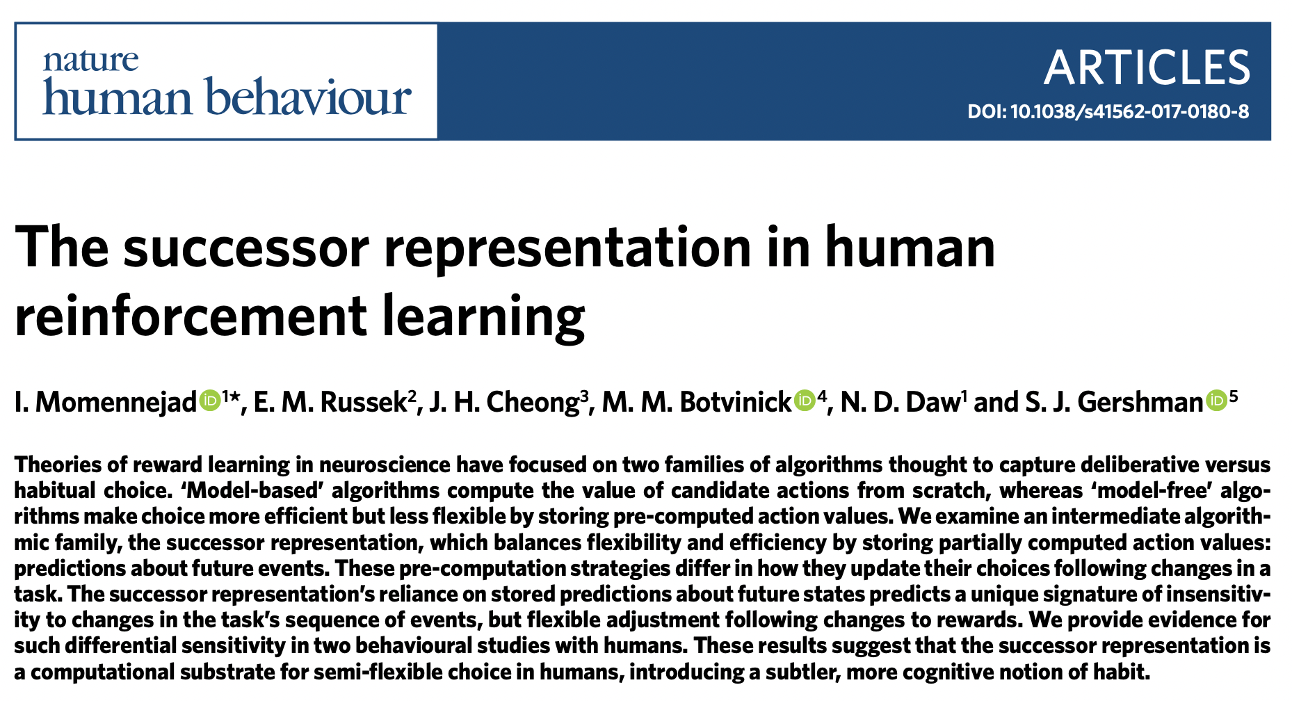 Momennejad et al. (2017). The successor representation in human reinforcement learning.