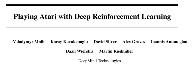 Mnih, V., Kavukcuoglu, K., Silver, D., Graves, A., Antonoglou, I., Wierstra, D., et al. (2013). Playing Atari with Deep Reinforcement Learning. http://arxiv.org/abs/1312.5602