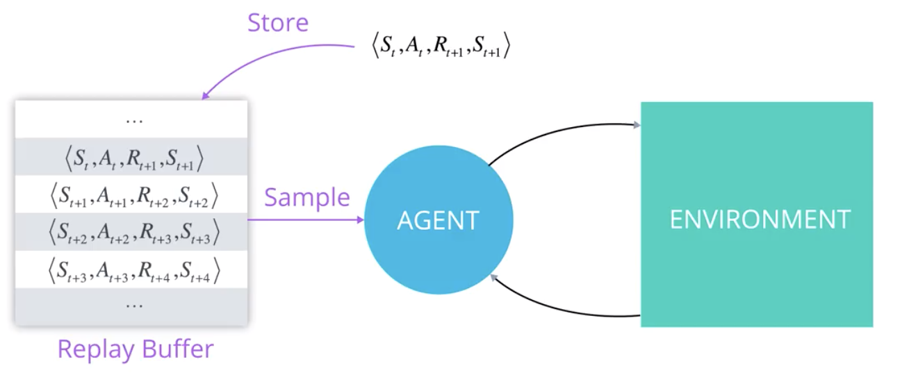In RL, we create the “training set” (transitions) during training: the samples are not i.i.d as we act sequentially over time.
