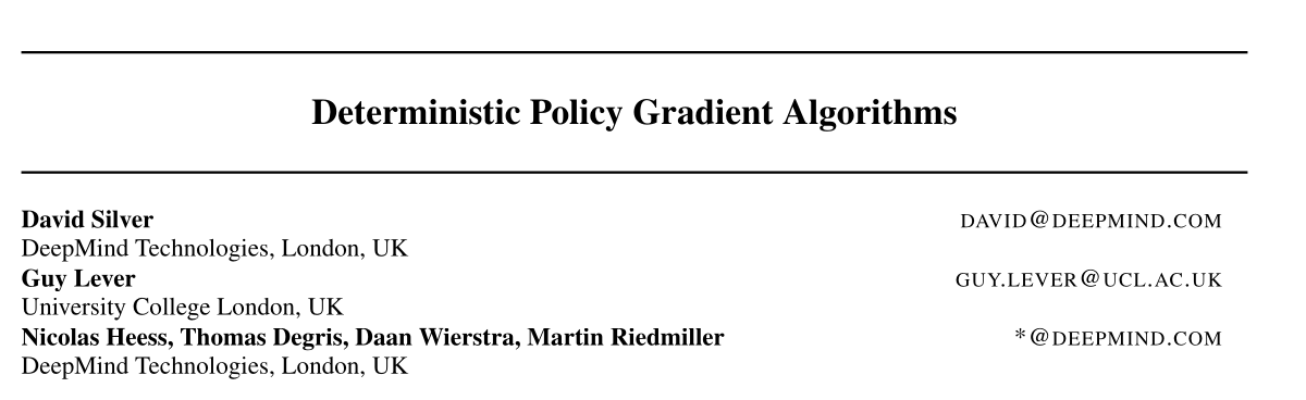 Silver et al. (2014) Deterministic Policy Gradient Algorithms. ICML