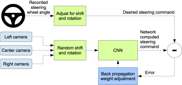 NVIDIA trained a CNN to reproduce wheel steerings from experienced drivers using only a front camera.