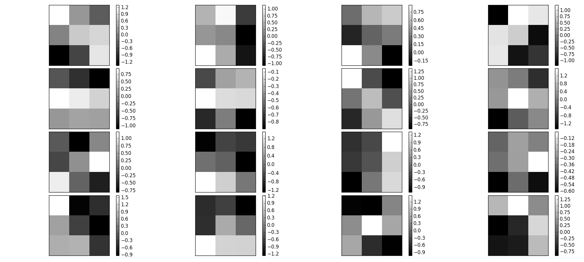 The first convolutional layer extracts 16 features, using 3x3 kernels.