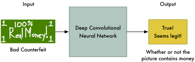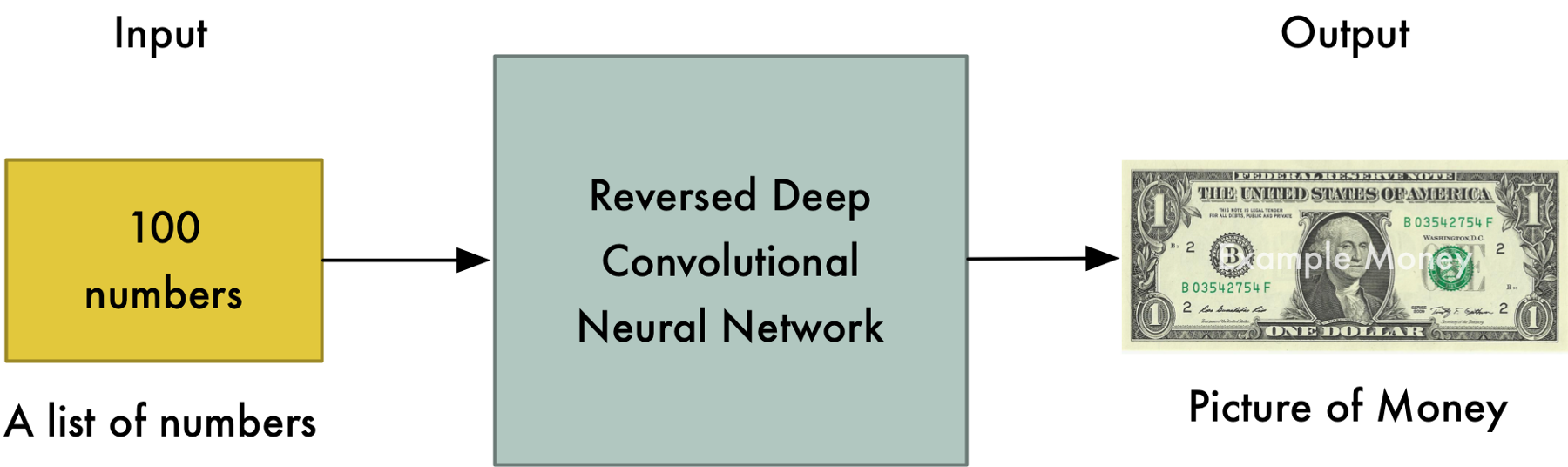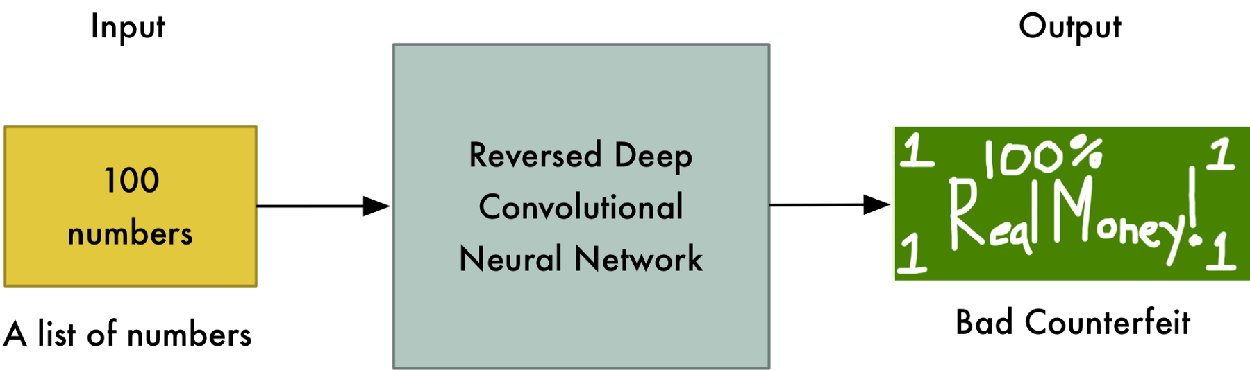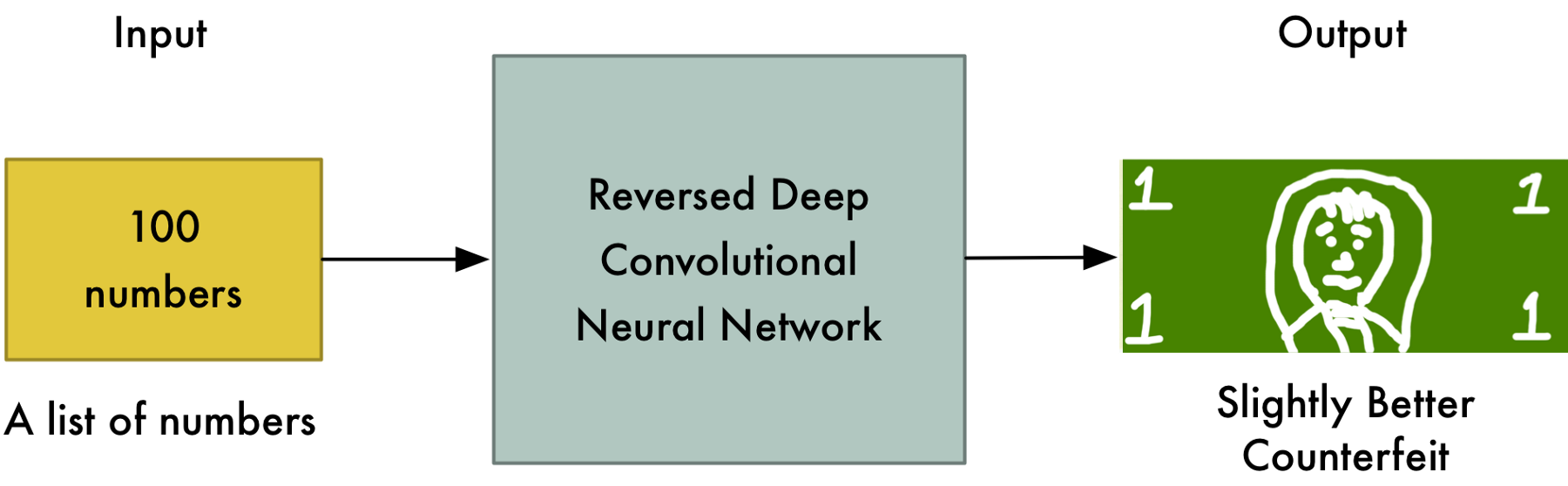 The Generative Adversarial Network (GAN, Goodfellow at al., 2014) is a smart way of providing a loss function to the generative model. It is composed of two parts: