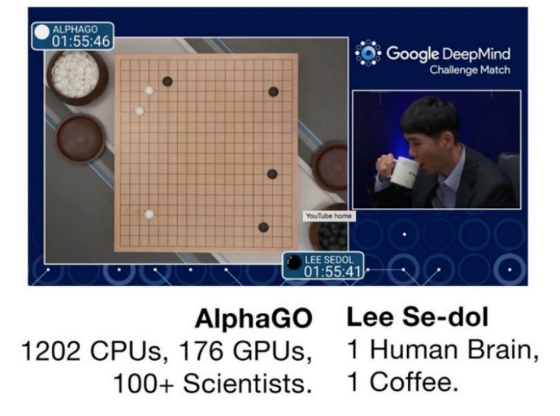 AlphaGo consumes 1 MW. The world total electricity production is around 25 TW (25 million AlphaGos).