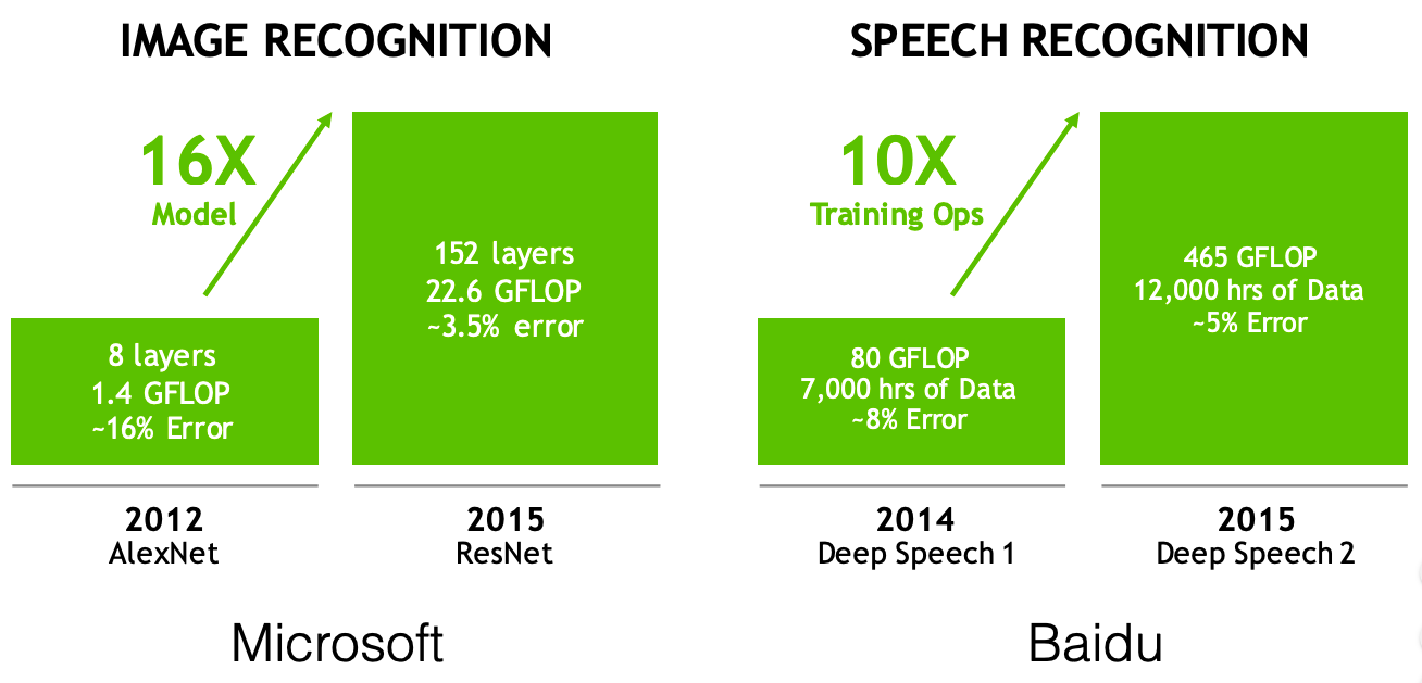 The computational power needed by deep networks increases exponentially: more layers, more parameters, more data, more everything.