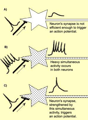When an axon of cell A is near enough to excite a cell B and repeatedly or persistently takes part in firing it, some growth process or metabolic change takes place in one or both cells such that A’s efficiency, as one of the cells firing B, is increased.
