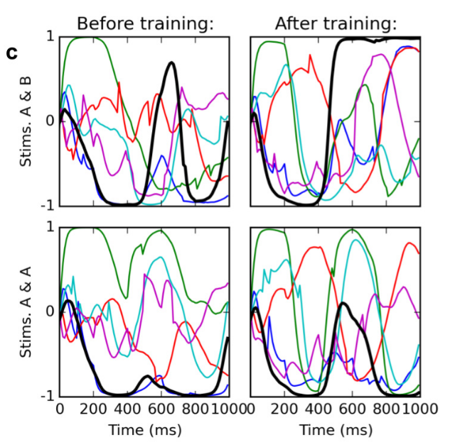 The trajectories are more stable (but still highly dynamical), making the job of the readout neurons easier.
