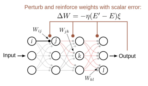Still not biologically plausible: a synapse cannot access and store directly the perturbations, which may come from other neurons.