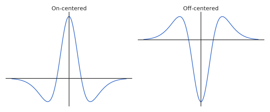 On-center neurons fire when a bright area at the corresponding location is surrounded by a darker area.