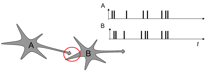 When an axon of cell A is near enough to excite a cell B and repeatedly or persistently takes part in firing it, some growth process or metabolic change takes place in one or both cells such that A’s efficiency, as one of the cells firing B, is increased. Donald Hebb, 1949