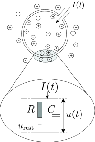 C is the membrane capacitance, g_L the leak conductance and V_L the resting potential.