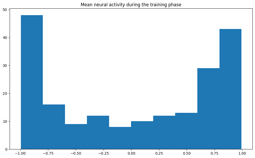 It is interesting to note that, for the autoregression to work correctly, the input biases are critical. They have the effect that many reservoir neurons are saturated (+1 or -1) and only a few are in the “useful” region and change their sign.